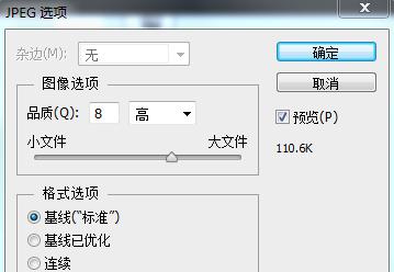 2. 針對性選擇圖片格式,在無(wú)透明背景需求下,對于顏色較單一、無(wú)色彩漸變的圖片僅使用gif格式,對于jpg圖片也可按照其清晰度要求,在導出jpg的時(shí)候選擇對應的“品質(zhì)”進(jìn)行優(yōu)化: