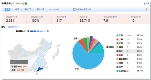 ◆ 對于已經(jīng)進(jìn)行了推廣的地域,可以及時(shí)地了解在該地域的推廣策略是否帶來(lái)了足夠的訪(fǎng)客,以及這些訪(fǎng)客對網(wǎng)站內容是否足夠感興趣,借助這些信息可以進(jìn)一步評估在該地域的推廣方案的合理性,并且不斷地調整與優(yōu)化。