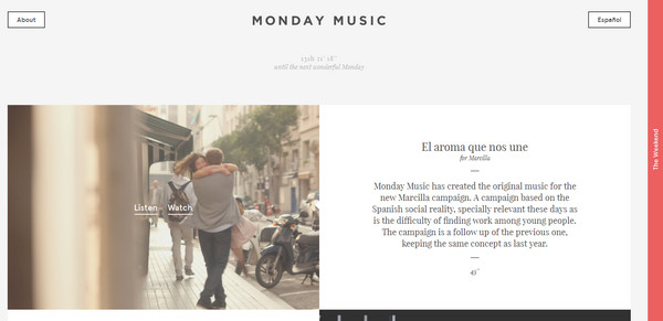Monday Music 的頁(yè)面設計整齊干凈,配色也夠清爽。由于設計師使用了響應式布局,所以也可以在各種設備上瀏覽。