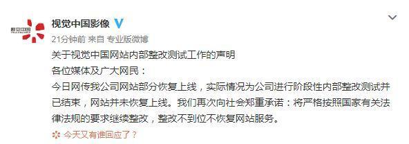 視覺(jué)中國網(wǎng)站部分恢復上線(xiàn)?官方回應:并未恢復