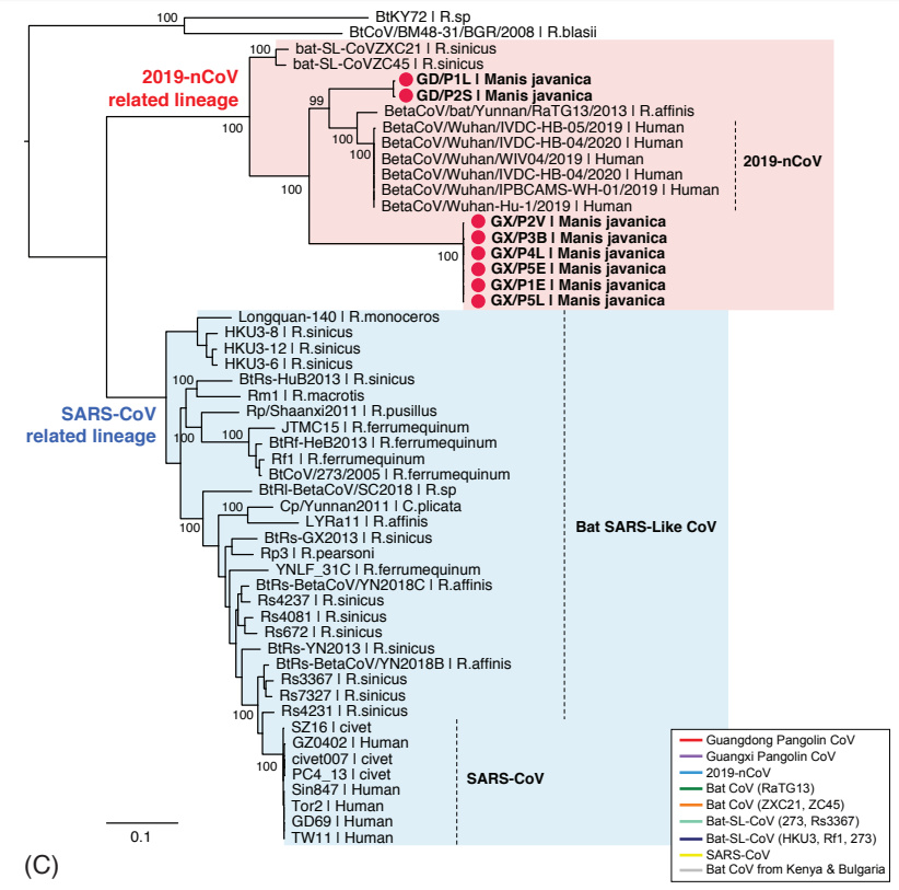 2 月 7 日,華南農業(yè)大學(xué)宣布在新型冠狀病毒潛在中間宿主的溯源上取得突破,當時(shí)研究專(zhuān)家表示穿山甲為新型冠狀病毒的潛在中間宿主,但支撐這一結論的研究結果尚未發(fā)表。直到 2 月 20 日,管軼教授和廣西醫科大學(xué)胡艷玲